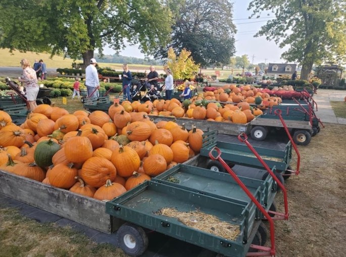 Our Fall Family Fun Weekends offer an added attraction on Saturdays and Sundays, starting September 18th through October 30th. We offer a one of a kind, family friendly, budget friendly, experience that everyone is sure to enjoy. There is no admission fee or parking fee to come on the grounds and experience the wonderful scenes of fall on our farm. You have access to all activity and play areas at no extra charge. Come and explore our sunflower patch, corn maze, crazy maze, tiny town play village, rock pits, straw stack slide zone, straw maze, farm animals, picture scenes and tons upon tons of PUMPKINS. In addition to these activities, weekends offer two hayride experiences. One that takes you along the Great Miami River to view our hayride scenes and stops at our pick your own pumpkin patch. Here you have the opportunity to run and explore a real pumpkin patch and pick your carving pumpkin right off the vine! Our second hayride option is a ride only that continues through the pumpkin patch, the sunflowers field and back to the farm where you can continue to play. All hayrides are $5/rider, those 2 and under are free. Pumpkins are not included in the ride price, since our patch offers a such a range of pumpkin sizes. You have the opportunity to pick small pumpkins for the kiddies, or extra large carving pumpkins for the best Jack-o-lantern on the street! Pumpkins from this patch are $.49/pound. Weekends also include our barrel train for riders age 2-9, and is $3/rider, or 2 rides for $5. We also have invited food trucks this year on Saturdays and Sundays, from 11-6, weather permitting. Now you can play all day and stop for a lunch at Maka Mia Pizza, Bullard’s BBQ, Legasea East Coast Cafe, or grab a sweet treat from Katie’s Classic Cookies, Green Township Funnel Cakes, Amaizing Grace Kettle Corn, Kona Ice or Grounded Coffee (Food truck schedule may change weekly). If you’re looking for a picture perfect fall adventure, its here waiting for you! Hope to see you soon!